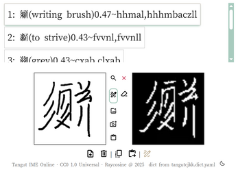 2025.9 增加手写输入 Handwriting mode is supported. You can also use it at https://huggingface.co/spaces/raycosine/Detangutify